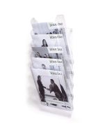 Voidaan kiinnittää seinään tai pitää pöydällä. Pakkauksessa 3 telinettä joihin mahtuu 24 mm:n paksuudelta esitteitä. Esitteiden koko A4 tai maksimi 311x240 mm.