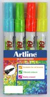 Lasitaulukynä värilajitelma 5 väriä, pyöreä kärki, 2,0mm. Värit: oranssi, punainen, sininen, vihreä, valkoinen. Sopii liitutussitaululle, valkotauluille, valotauluille, lasille, keramiikalle.