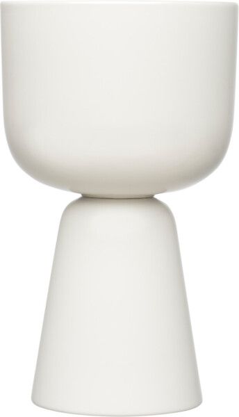 Muotoilija Matti Klenell sai idean Nappula-kynttiläjalkoihin Iittalan lasimuseossa näkemänsä pöydän jalkojen omintakeisista muodoista. Keraamisen Nappula-ruukun pehmeästi kaartuva muoto leikittelee tunnetun klassikkoesineen muodoilla. Modernin pohjoismaisen design-klassikon suurempi versio on kodin katseenvangitsija. Inspiroiva yksityiskohta kodin viherkasveille, valkoinen korostaa selkeää muotoilua. Näyttävä sekä yksinään että ryhmäksi koottuna. Oiva lahja.