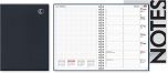Kalenterin koko on A5, viikot 51/2025-1/2027, projektit, vuosisuunnittelut 2026 ja 2027. Aukeamalla muistiinpanosivu ja viikon kalenteritiedot tuntimerkintöineen 8-18, liputuspäivät, nimipäivät, kansalliset pyhät luettelona. Wiresidottu, kulmaperforoitu. Suomenkielinen. Sopii edellisen vuoden kansiin. Yhteensopiva myös muiden kustantajien vastaaviin kansiin. Painettu FSC-sertifioidulle paperille.