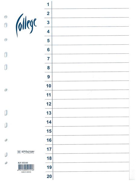 Hakemisto A4 20-osainen kartonkia