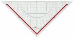 Kolmionmallinen astelevy mm-jaolla ja 14cm mittakaavalla. Ei sis. kahva. Punaisella painettu asteikko. Materiaali: kirkas polystyreeni. Pakattu paperikuoreen. Pakkauskoko: 10 kpl/pak.
