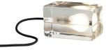 Lampun muoto on hiekkapuhallettu. MINI BLOCK lampun johto on muovinen musta. Lampun mitat ovat 12,5 x 8 x 7,5cm. Valaisimen kanta: E6.