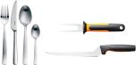 Fiskars Functional Form 24-osainen aterinsarja. Aterimet on valmistettu ruostumattomasta teräksestä ja ovat mattapintaisia.